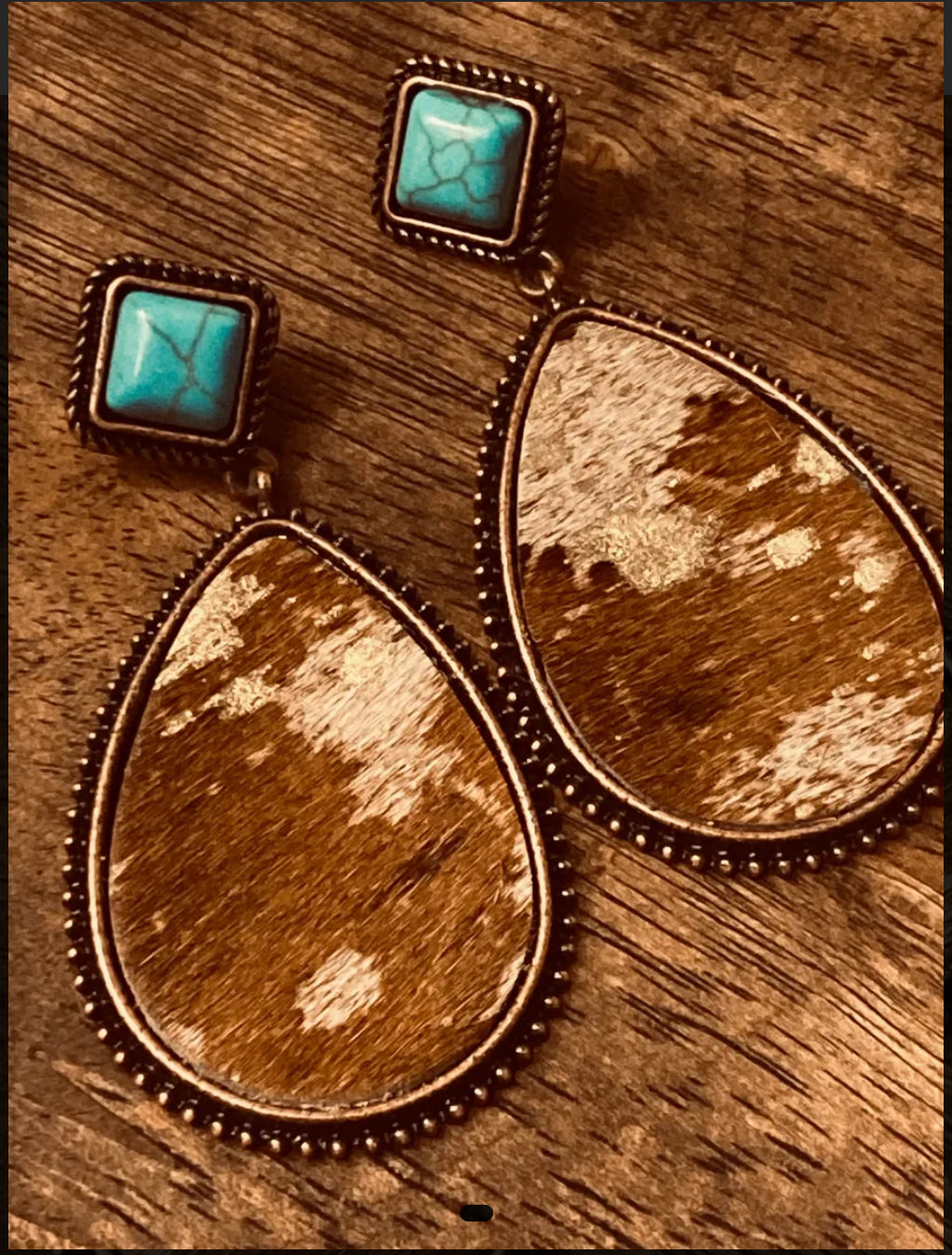 Jolene - Fur On Cowhide with Turquoise Earrings