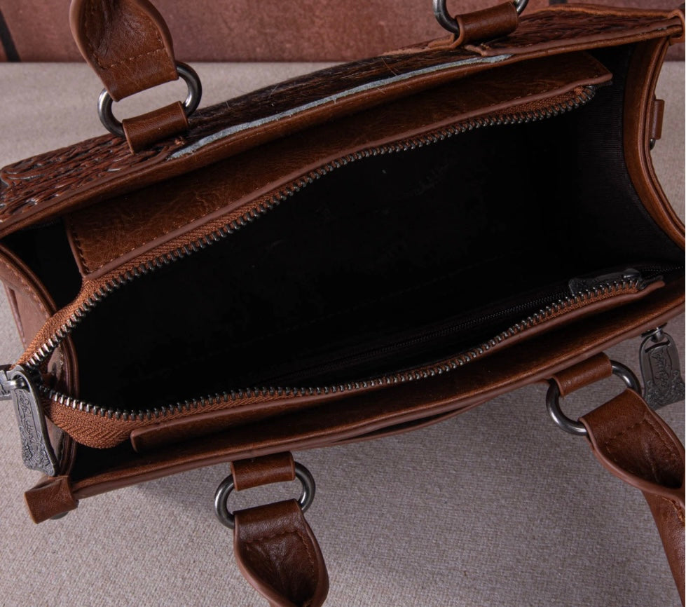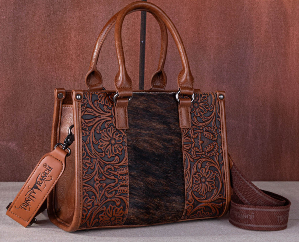 Trinity Ranch Hair On Cowhide Floral Tooled Concealed Carry Bag